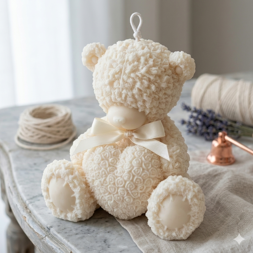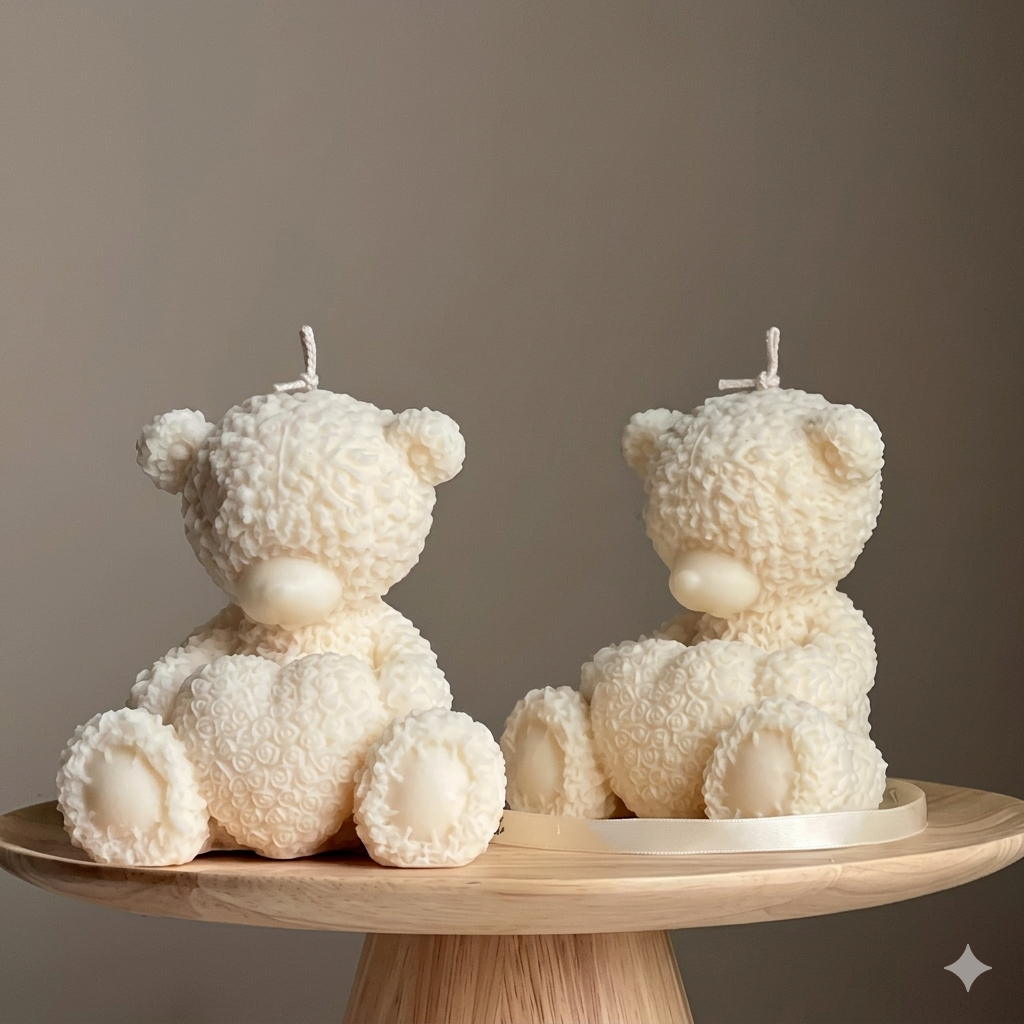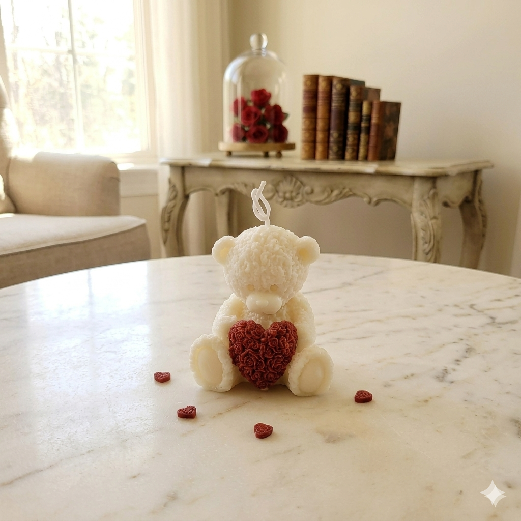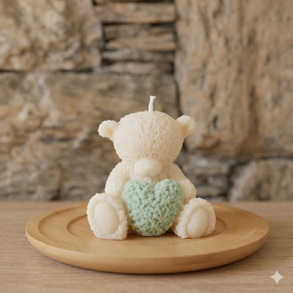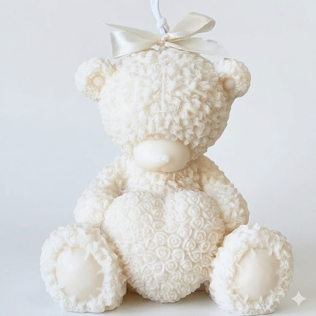 Transforme qualquer ambiente com a ternura e a elegância da nossa Vela Urso com Coração. Feita artesanalmente com atenção aos mínimos detalhes, esta peça não é apenas uma vela, mas um item de decoração exclusivo que encanta pelo design tridimensional e textura única.